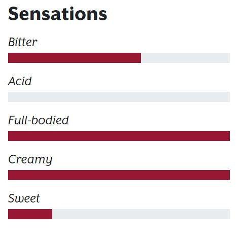 Der Kaffee bietet einen kräftigen Geschmack, ist cremig mit goldenen Nuancen und besitzt aromatische Röstnoten. Vollmundig und intensiv.