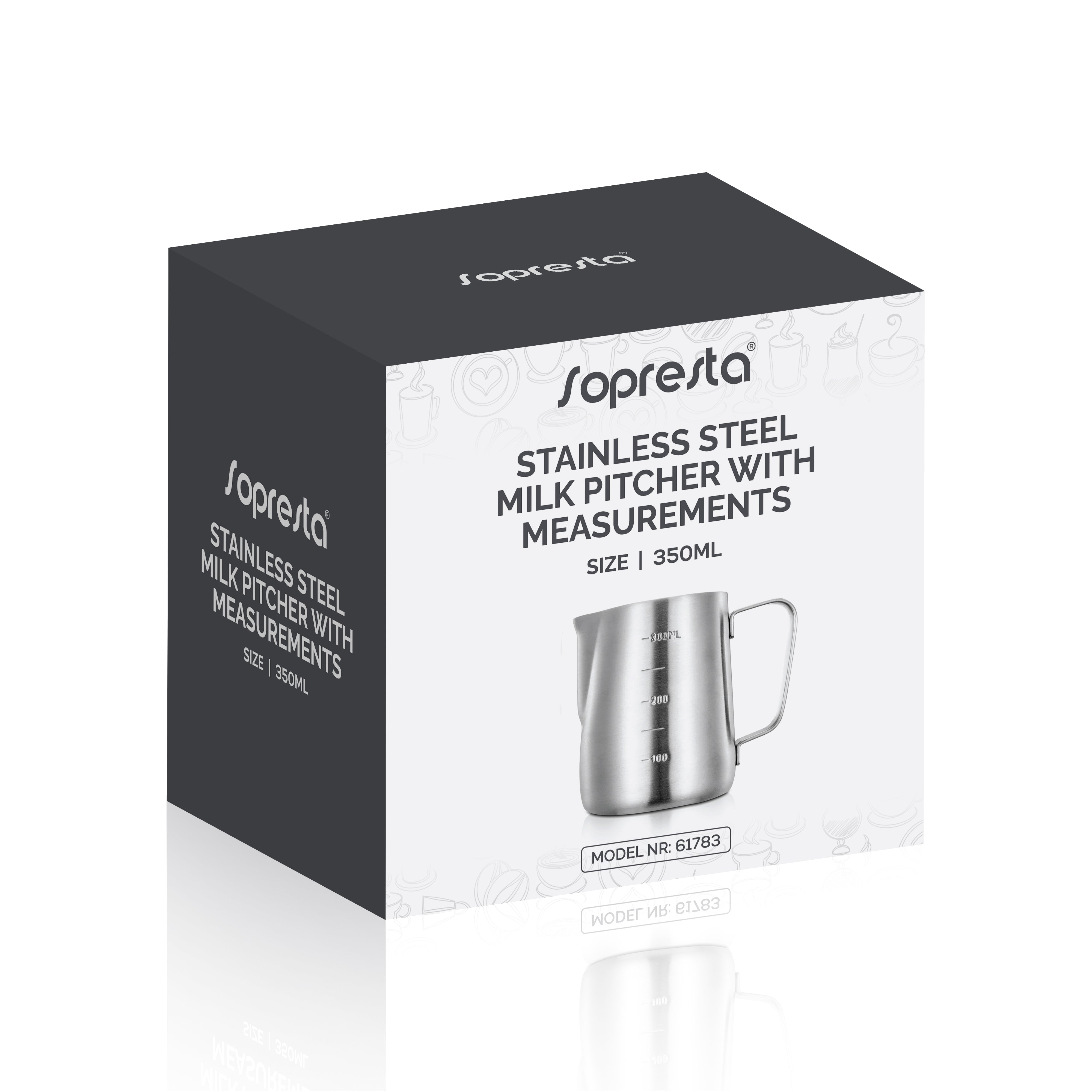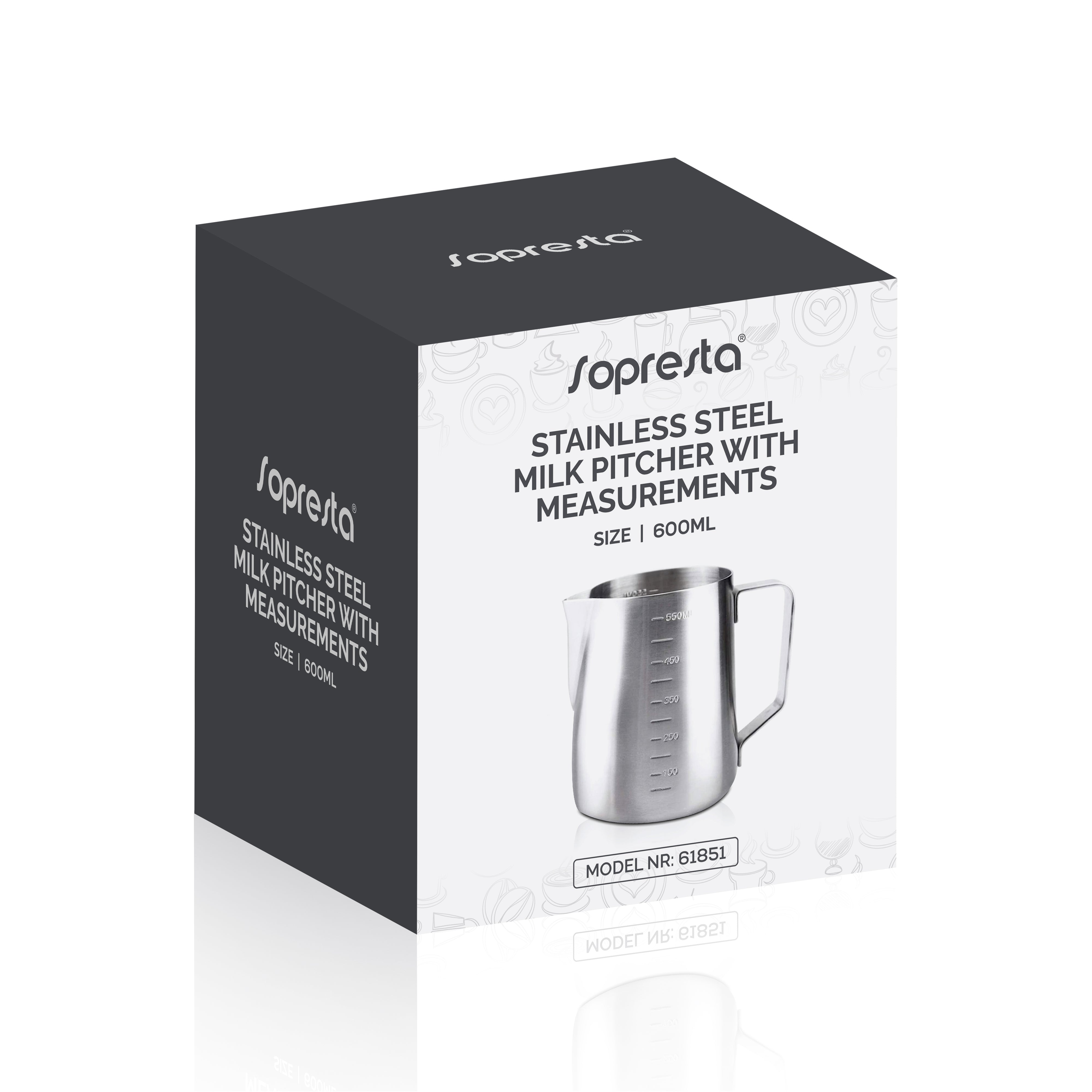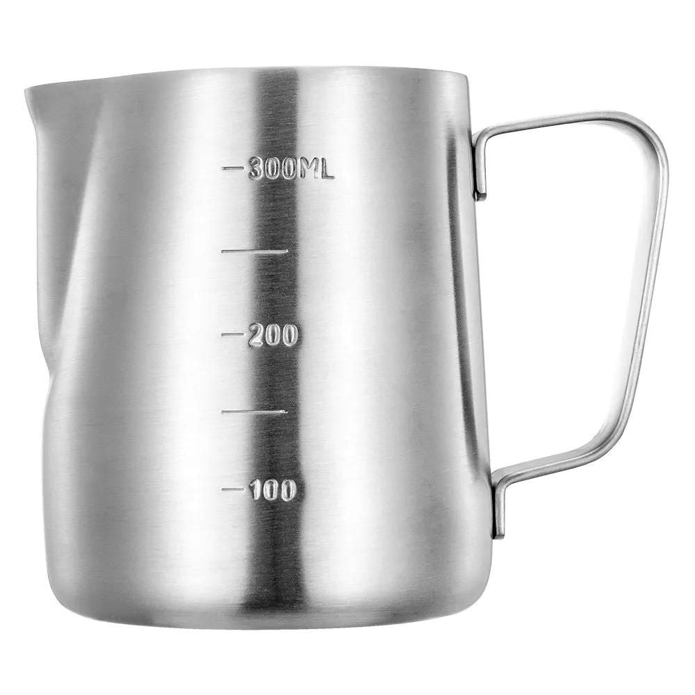 Die Verwendung einer Kanne zum Milchschäumen erleichtert es, den perfekten Kaffee zuzubereiten! Mit einem klassischen Stahlfinish hat sie zwei seitliche Maßeinheiten und ist wunderschön aus Edelstahl gefertigt, was sie geruchlos, korrosions-, stoß- und hitzebeständig macht! Perfekt zum Schäumen oder Dämpfen von Milch für Espresso, Cappuccino oder heiße Schokolade. Seien Sie Ihr eigener Barista zu Hause oder im Büro.