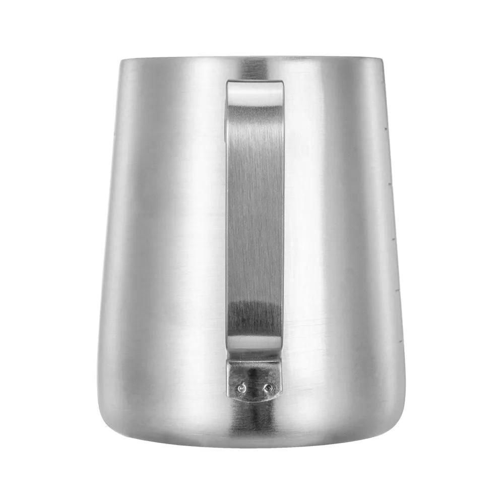 Ausgestattet mit einem ergonomischen Griff für einen bequemen Halt, verhindert das einzigartige Design mit dem langen Ausguss, dass Milch verschüttet wird! Diese Kanne wurde für Latte Art entwickelt und hat eine Ausgusstyp mit moderater Breite, die exzellente Schäumung ermöglicht, ideal zum Aufschäumen von Milch, Milchschaum, Cappuccino, Latte Art usw.
