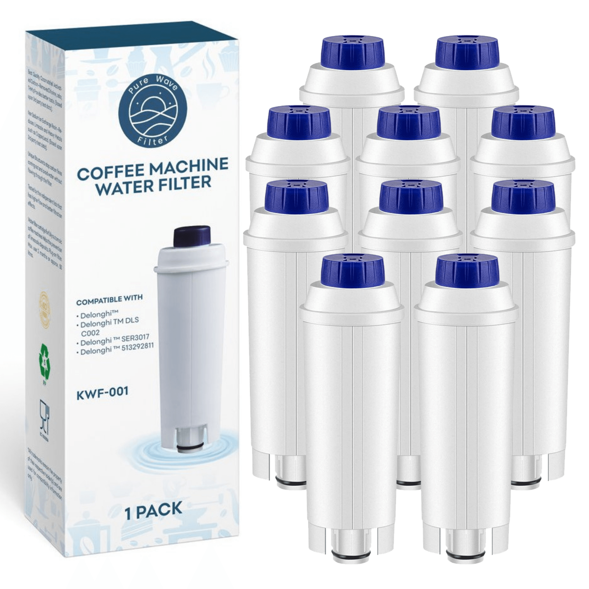 Das Pure Wave Wasserfilter KWF-001 ist der perfekte Filter für Delonghi Kaffeemaschinen, da es denselben hohen Filtrationsstandard wie die originalen Delonghi Filter bietet, jedoch eine wirtschaftlichere Wahl darstellt. Es handelt sich um ein kompatibles Delonghi Wasserfilter, das in alle Maschinen passt, die das Delonghi DLSC002 Filter verwenden.